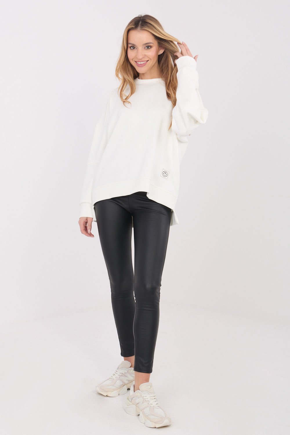 Damska bluza w stylu casual to wygodna i stylowa propozycja na co dzień. Wykonana z przyjemnej w dotyku wiskozy z dodatkiem elastanu, zapewnia komfort noszenia, elastyczność oraz dobre dopasowanie do sylwetki. Gładki wzór podkreśla jej uniwersalny charakter i sprawia, że bluza doskonale komponuje się z wieloma elementami garderoby. Standardowa długość z lekko wydłużonym tyłem nadaje nowoczesnego wyglądu i subtelnie wysmukla sylwetkę. Długi rękaw oraz okrągły dekolt gwarantują wygodę i swobodę ruchów. Model bez zapięcia, uzupełniony o niewielką naszywkę u dołu po lewej stronie, która stanowi delikatny, modny akcent.