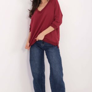 Bluzka w stylu casual, idealna na co dzień. Wykonana z wysokiej jakości bawełny z dodatkiem elastanu, dzięki czemu jest miękka, przewiewna i elastyczna, a jednocześnie dobrze dopasowuje się do sylwetki. Gładki wzór nadaje jej uniwersalnego charakteru i sprawia, że łatwo zestawić ją zarówno z jeansami, jak i spódnicą. Standardowa długość zapewnia komfort noszenia, a rękaw o długości 3/4 dodaje lekkości i sprawia, że bluzka sprawdzi się przez cały rok. Dekolt w serek subtelnie podkreśla szyję i optycznie wysmukla sylwetkę.