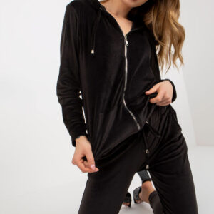 Ciekawy komplet składający się z kamizelki puchowej, bluzy i spodnie dresowych. Kamizelka zapinana na zatrzaski, po bokach kieszenie wsuwane. Bluza o prostym kroju z długim rękawem. Spodnie dresowe z wiązaniem w pasie oraz kieszeniami wsuwanymi.